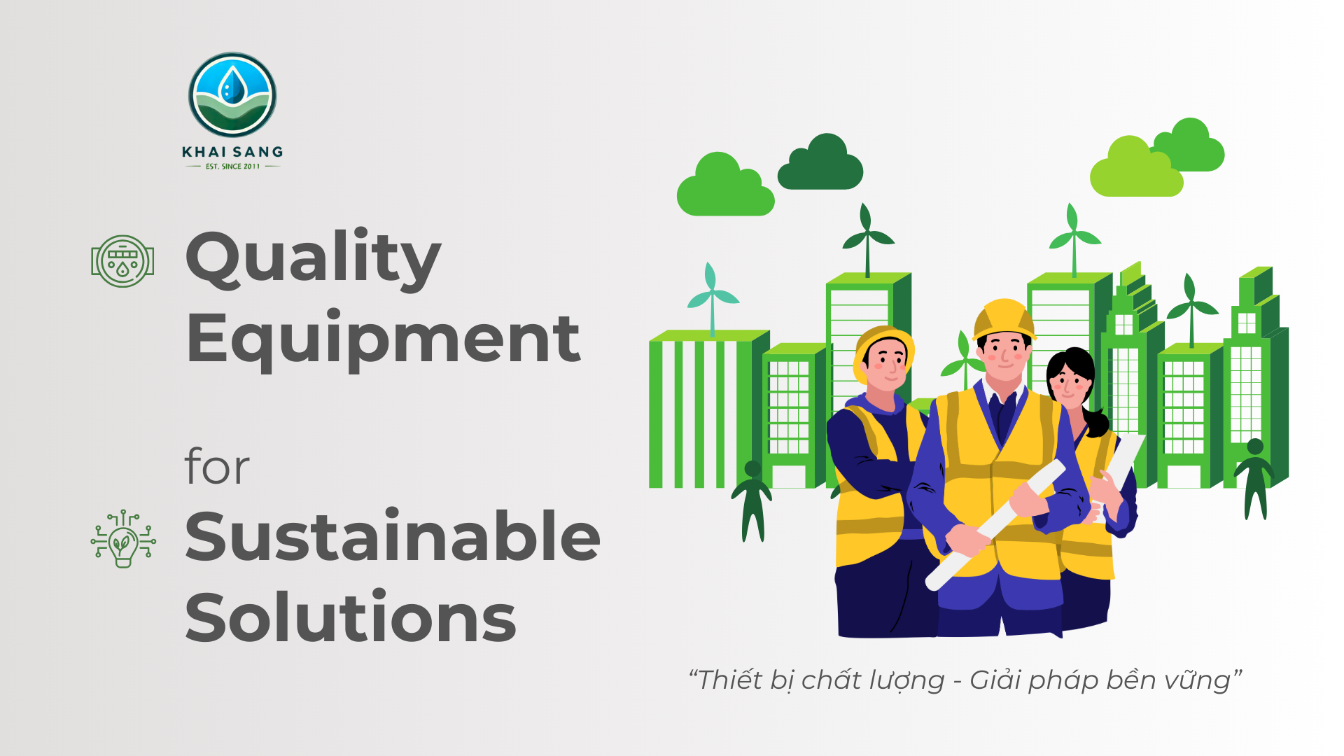 Thiết bị chất lượng – Giải pháp bền vững là phương châm mà Công ty TNHH Tư Vấn Đầu Tư Khai Sáng luôn hướng đến. Được thành lập từ năm 2011, công ty đã trải qua một hành trình dài với nhiều giai đoạn kinh tế biến động, nhưng vẫn vững vàng trên con đường phát triển. Sự kiên định với chất lượng và tính bền vững trong mọi giải pháp đã giúp Khai Sáng ghi dấu ấn mạnh mẽ trong ngành cấp nước và xử lý nước tại Việt Nam.